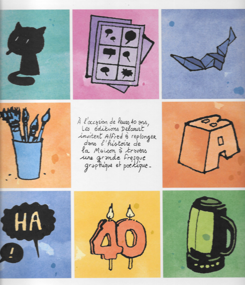 40 années en un peu plus de 200 fragments. À l'occasion de l'anniversaire des Éditions Delcourt, Alfred nous plonge dans l'intimité de la maison à travers une grande fresque graphique... comme un album photo poétique.