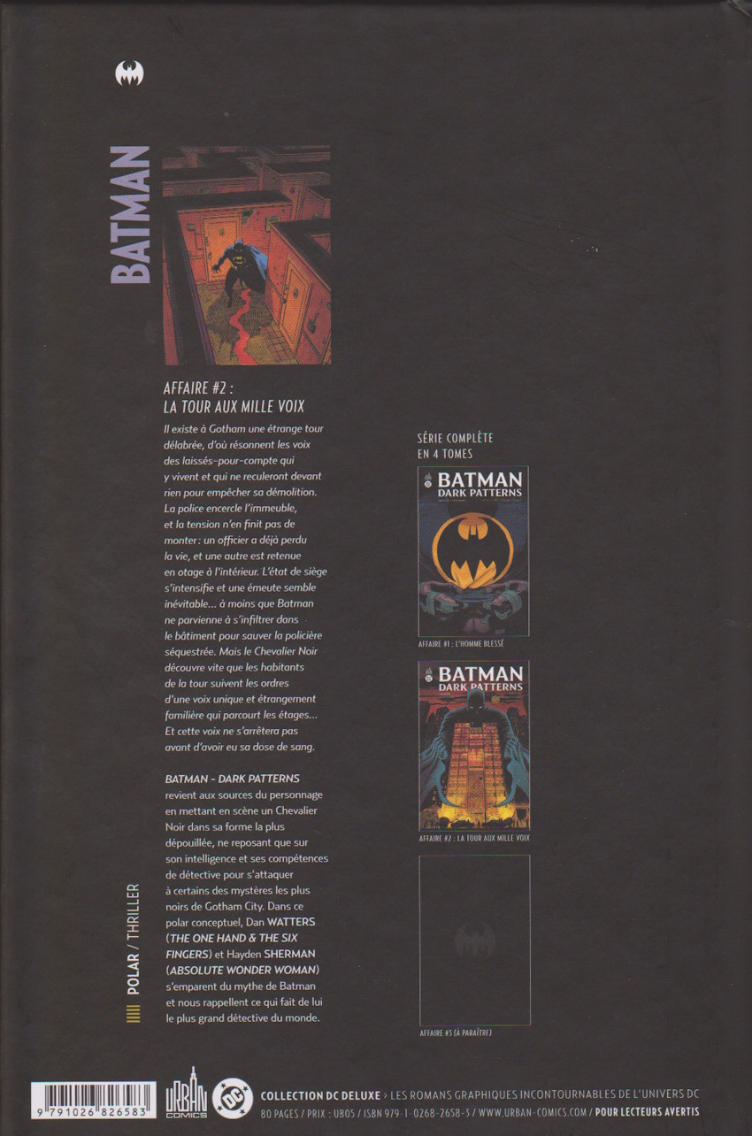 Il existe à Gotham City une étrange tour, d'où résonnent les voix des vivants et des morts. La police est en alerte et encercle l'immeuble, et la tension n'en finit de monter : un officier a déjà perdu la vie, et un autre est retenu en otage à l'intérieur. Une émeute semble inévitable... à moins que Batman ne parvienne à s'infiltrer dans le bâtiment pour sauver l'officier de police disparu. Mais le Chevalier Noir découvre vite que les habitants de la tour suivent les ordres d'une voix unique et étrangement familière qui parcourt les étages... et... Lire la suite