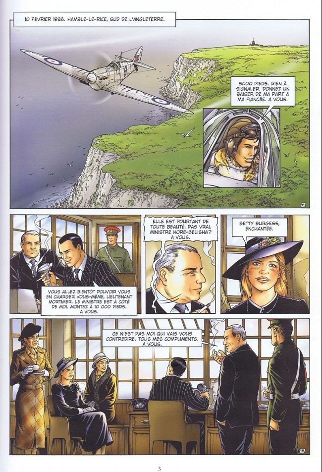 Mon fiancé, le lieutenant Mortimer se livre à l’essai d’un prototype d’un avion de chasse révolutionnaire, le Spitfire. Je suis ses essais depuis l’aérodrome d’où il a décollé. A 20 .000 pieds, il tente un piqué, le moteur cale… Vais-je déjà perdre mon fiancé alors que je viens à peine de le retrouver ? Heureusement, Harry est un pilote hors-pair et il réussit à rependre le contrôle de l’avion juste avant qu’il ne se crashe en mer ! Nous allons enfin pouvoir organiser notre fête de fiançailles ! … C’est sans compter sur cet odieux photographe américain, ce Dodge…