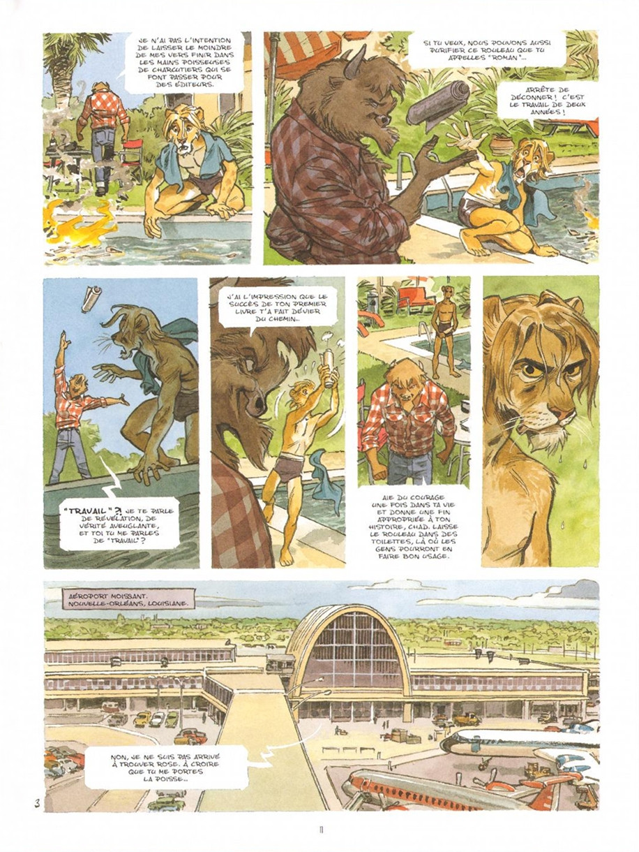 Le dessin est égal à lui-même : léger, lumineux, détaillé et on a toujours autant de plaisir à découvrir de nouveaux personnages sous les traits d'un nouvel animal, par exemple le bison pour l'écrivain fonceur et décidé. Vraiment un pur régal de détente et un bon moment.