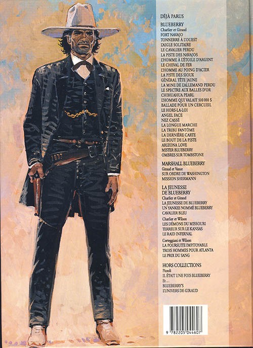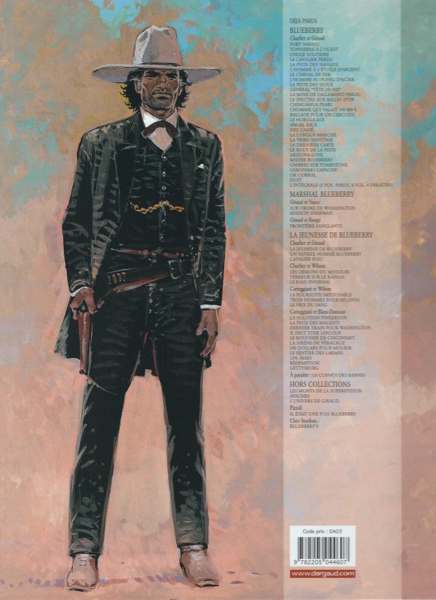 Info édition : Logo Dargaud sur fond orange. Au 4e plat, 28 titres Blueberry, 3 titres Marshall Blueberry, 13 titres La jeunesse de Blueberry et 1 à paraître, et 3 titres Hors collection.