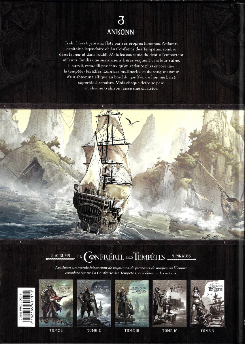 Trahi, blessé, jeté aux flots par ses propres hommes, Ankonn, capitaine légendaire de la Confrérie des Tempêtes, sombre dans la mer et dans l'oubli. Mais les courants du destin l'emportent ailleurs. Tandis que ses anciens frères voguent vers leur ruine, il survit, recueilli par ceux qu'on redoute plus encore que la tempête : les Elfes. Loin des mutineries et du sang, au coeur d'un shaeguna elfique au bord du gouffre, un homme brisé s'apprête à renaître. Mais chaque dette se paie. Et chaque trahison laisse une cicatrice.