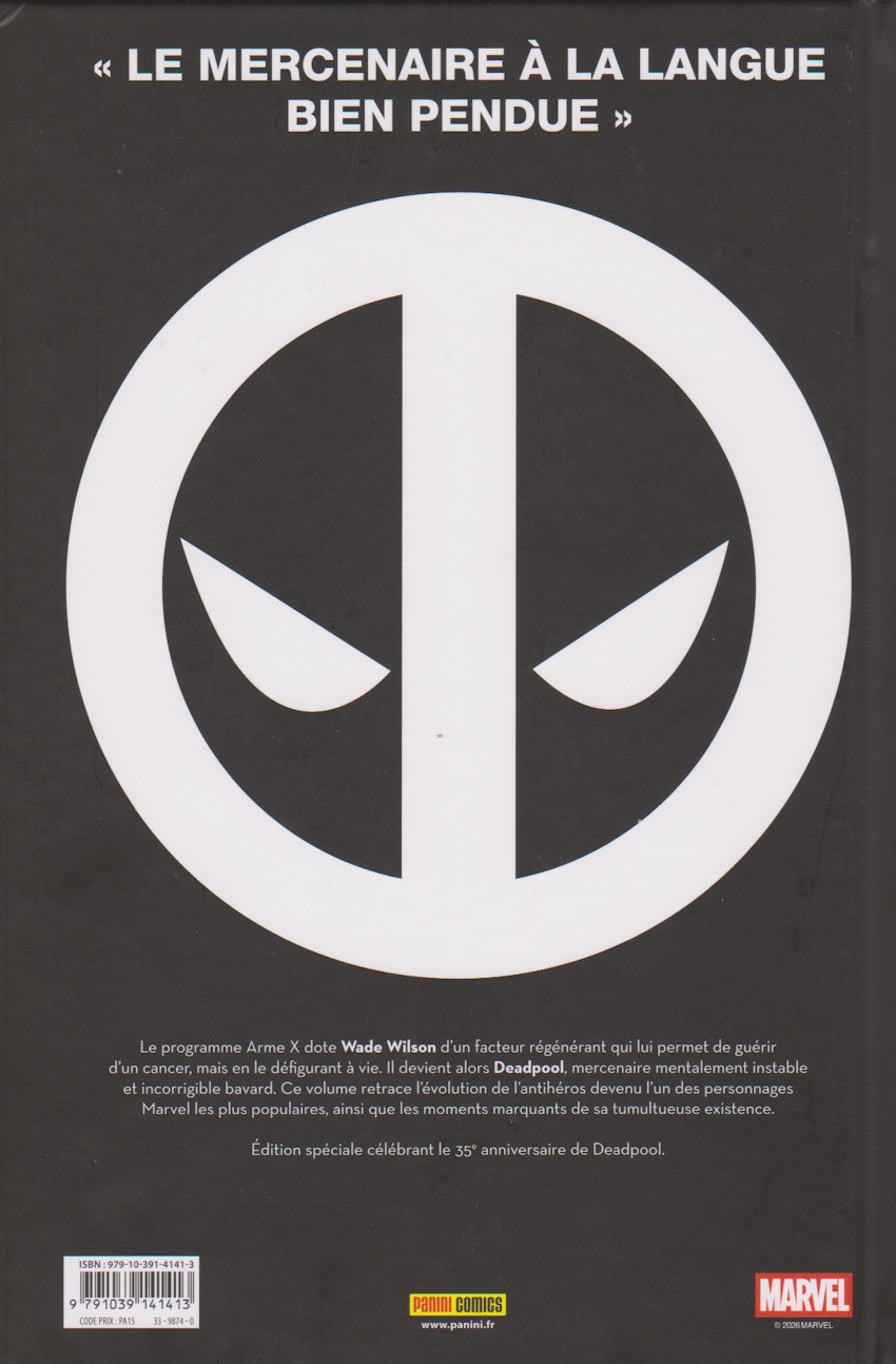 Wade Wilson est l’un des mercenaires les plus efficaces au monde, mais aussi le plus bavard et le plus cinglé ! Depuis qu'il est passé entre les mains du projet Arme X, il n'a plus toute sa tête mais possède un pouvoir guérisseur infaillible ! Malgré ses méthodes, Deadpool est un type bien. Voilà 35 ans que Deadpool fait exploser des cervelles et brise le quatrième mur. Pour fêter ça, nous vous proposons une nouvelle édition de l'album MARVEL ANTHOLOGIE. Une célébration à la hauteur de l'anniversaire de ce bon vieux Wade... star du plus gros carton... Lire la suite