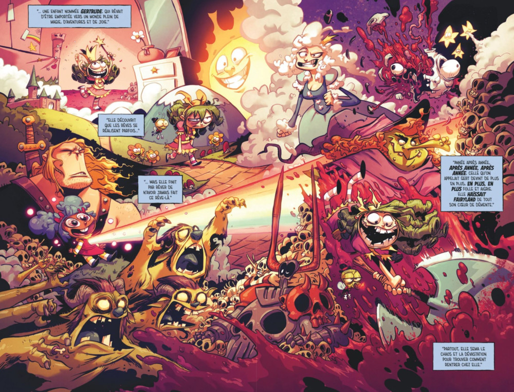 Gertrude a passé trente ans a Fairyland, et le moins qu'on puisse dire c'est qu'elle était plus que ravie de quitter ENFIN cet univers de cinglés pour retrouver notre monde triste et ennuyant ! Le souci, c'est que notre maniaque aux cheveux verts n'est pas bonne à grand-chose, si ce n'est massacrer ceux qui la contrarient un peu trop à coup d'attendrisseur à viande et de caisse enregistreuse... Alors, quand on vient lui demander son aide pour retrouver un gamin paumé à Fairyland, elle se dit que ses talents seront au moins employés à leur juste... Lire la suite