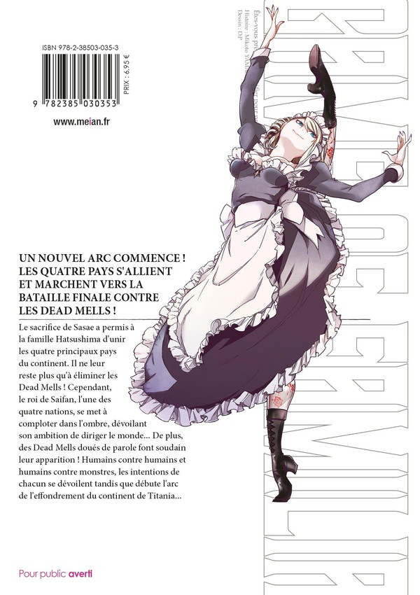 Un nouvel arc commence ! Les quatre pays s'allient et marchent vers la bataille finale contre les Dead Mells ! Le sacrifice de Sasae a permis à la famille Hatsushima d'unir les quatre principaux pays du continent. Il ne leur reste plus qu'à éliminer les Dead Mells ! Cependant, le roi de Saifan, l'une des quatre nations, se met à comploter dans l'ombre, dévoilant son ambition de diriger le monde... De plus, des Dead Mells doués de parole font soudain leur apparition ! Humains contre humains et humains contre monstres, les intentions de chacun se... Lire la suite