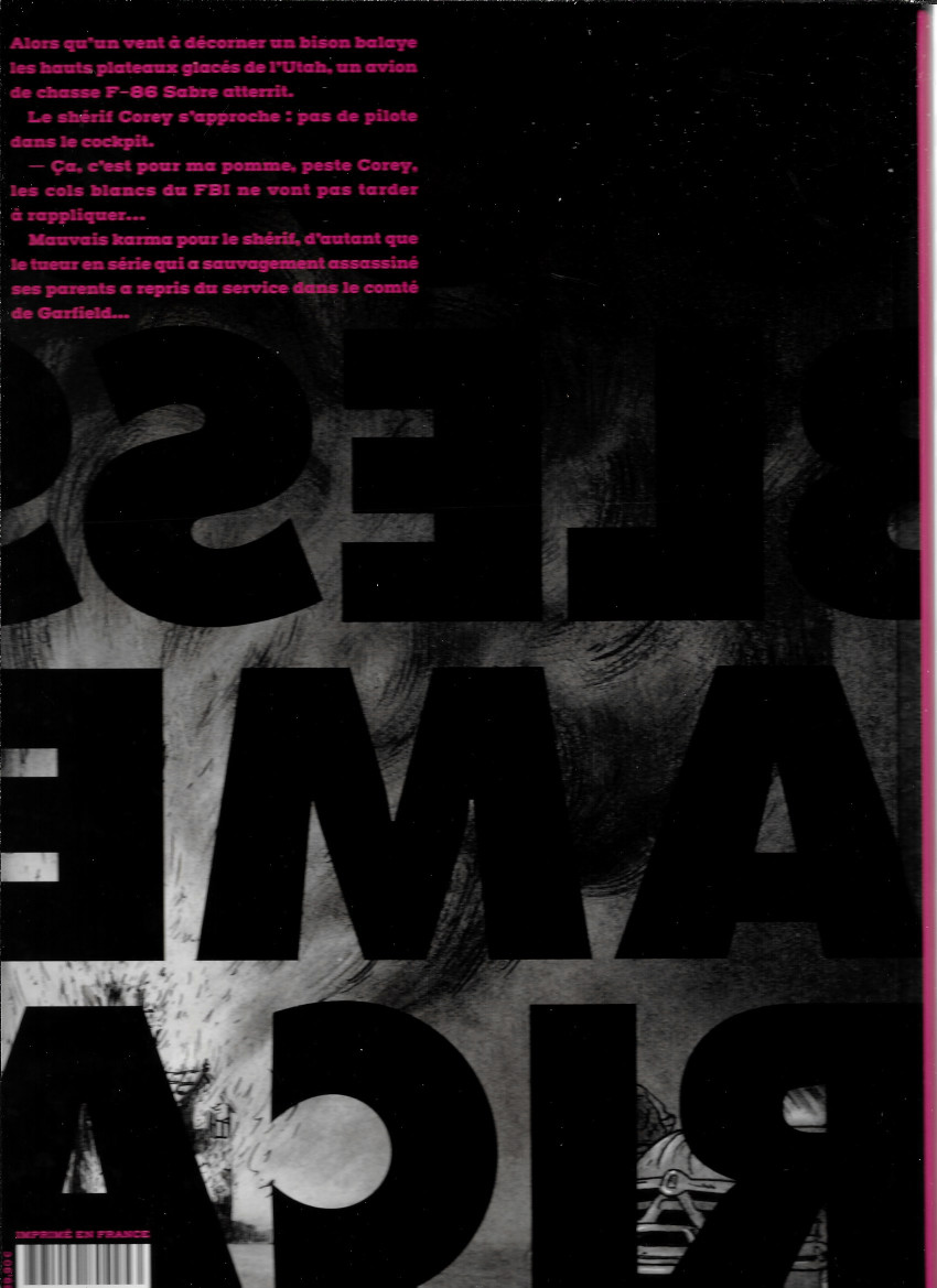Alors qu’un vent à décorner un bison balaye les hauts plateaux glacés de l’Utah, un avion de chasse F-86 Sabre atterrit. Le shérif Corey s’approche : pas de pilote dans le cockpit. — Ça, c’est pour ma pomme, peste Corey, les cols blancs du FBI ne vont pas tarder à rappliquer… Mauvais karma pour le shérif, d’autant que le tueur en série qui a sauvagement assassiné ses parents a repris du service dans le comté de Garfield…
