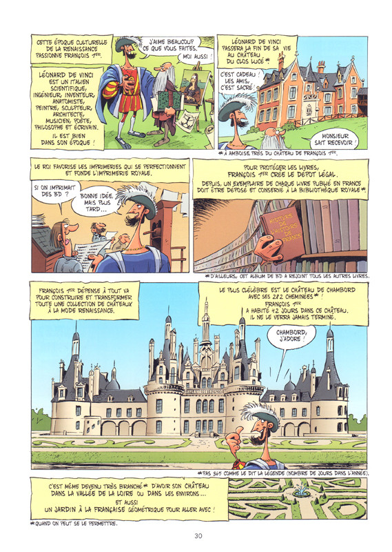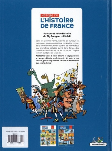 Histoire et humour se mélangent dans un délicieux cocktail temporel, de la création de l’univers à partir de rien du tout aux premières ballades sur la terre ferme des premières bestioles et de la chute de l’empire romain au règne de Louis XIV.