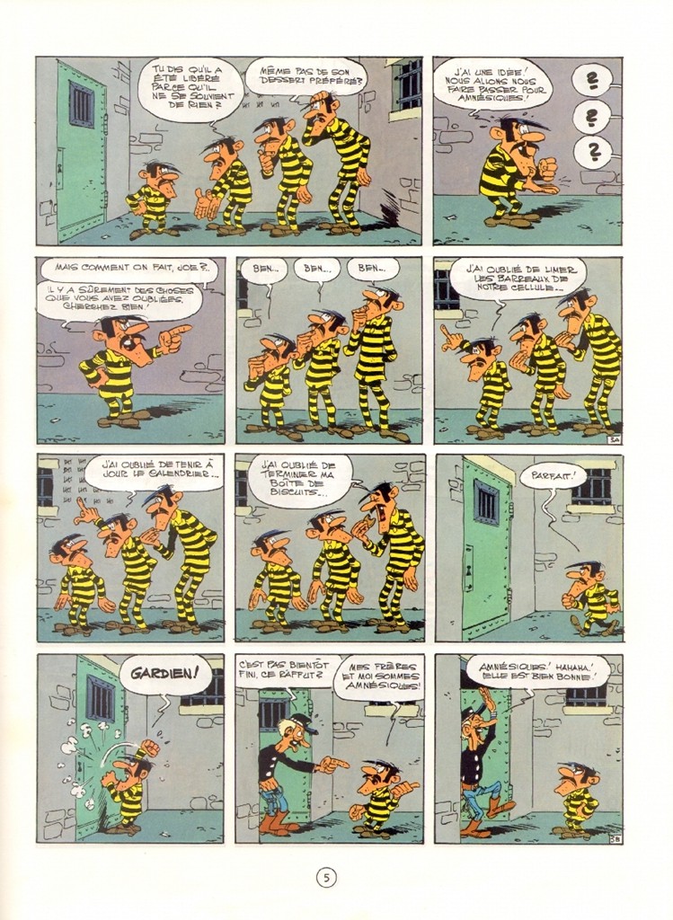 Bon album. Certains passages sont hilarants, comme celui où Averell retrouve la mémoire. La période post-Goscinny est assez irrégulière, avec des albums allant du "bon" au "très mauvais", mais personnellement je trouve que c'est ceux de Fauche et Léturgie qui s'en sortent le mieux. Quant au dessin de Morris, s'il a perdu de sa superbe, il reste encore d'un bon niveau.