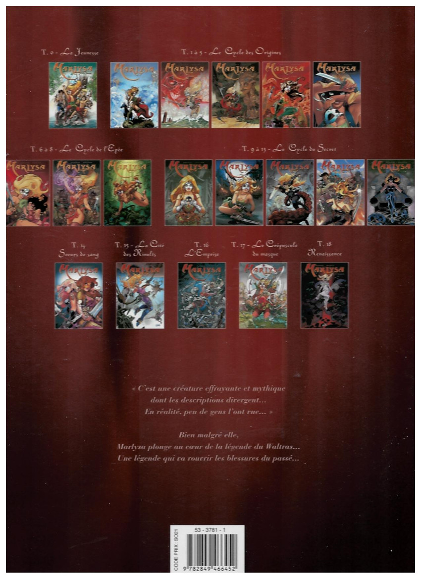 Marlysa se trouve mêlée à la légende du Waltras et rencontre d'autres redoutables guerrières, les amazones. Les hommes ne sont guère mis en valeur dans ce volume. L'intrigue est intéressante mais l'humour est un peu lourd.