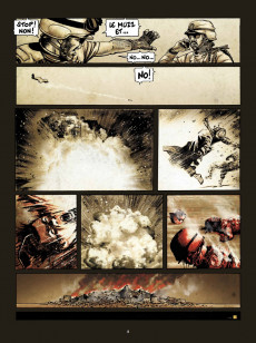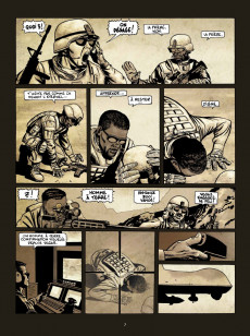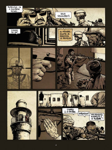 Les dessins de Goffaux font preuve de beaucoup de talent et d’originalité grâce aussi au coloriste, Redj (Régis). Pour les couleurs, parlons-en, il y a tout une déclinaison de tons sépia rehaussés régulièrement par du rouge qui confère à ce récit un côté sombre.