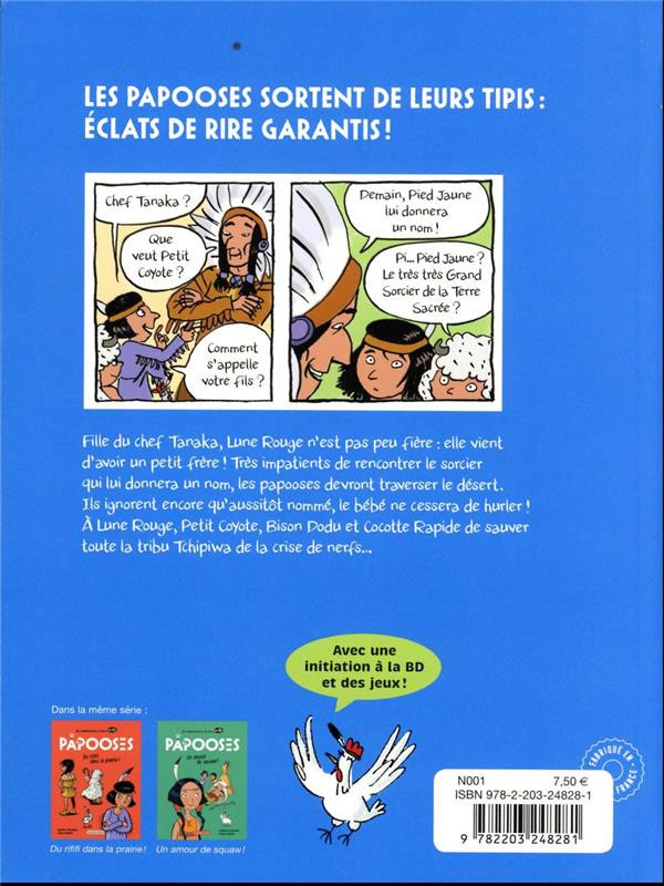 Une adorable série qui se prend beaucoup moins au sérieux que Yakari. Les papooses réagissent comme des gamins de cour d'école, ce qui apporte une fraîcheur et un attrait indéniable. Les dessins sont ludiques, mais efficaces, avec un à trois strips par page et une mise en page dynamique très réussie.
