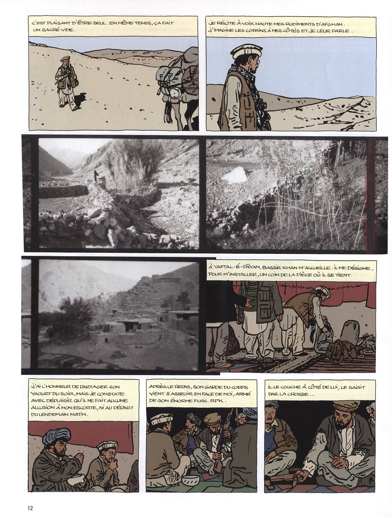 Les photos en noir et blanc, mélangées de façon habile au dessin, imbibent l'histoire et le lecteur de cette réalité Afghane. Un lecteur qui va partager les émotions de Didier tout au long de ce récit. Certaines photos, comme celle qu'il prend de son cheval au moment où il croit ne plus jamais revoir le jour ou celle assis avec un âne sur un rocher (tome 1), font partager des moments qu'il serait impossible de dessiner ou de narrer.