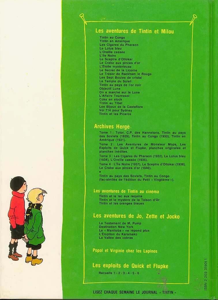 Info édition : D. 1975 0083/59 pas de DL, pas de date d'impression 4éme plat : Archives Hergé 3 Tomes, Quick et Flupk 5 recueils