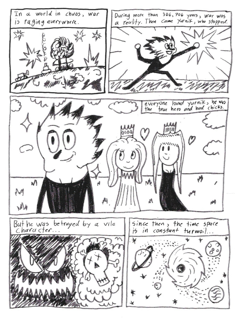 Bande dessinée improvisé mettant en vedette Ratelio Bourtake, le rat alcoolique. Jacob Doyon a dessiné les pages de gauche et Vincent Rochon celles de droite.