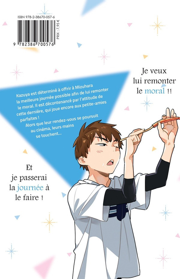 Kazuya est déterminé à offrir à Mizuhara la meilleure journée possible afin de lui remonter le moral. Il est décontenancé par l'attitude de cette dernière, qui joue encore aux petite-amies parfaites ! Alors que leur rendez-vous se poursuit au cinéma, leurs mains se touchent...