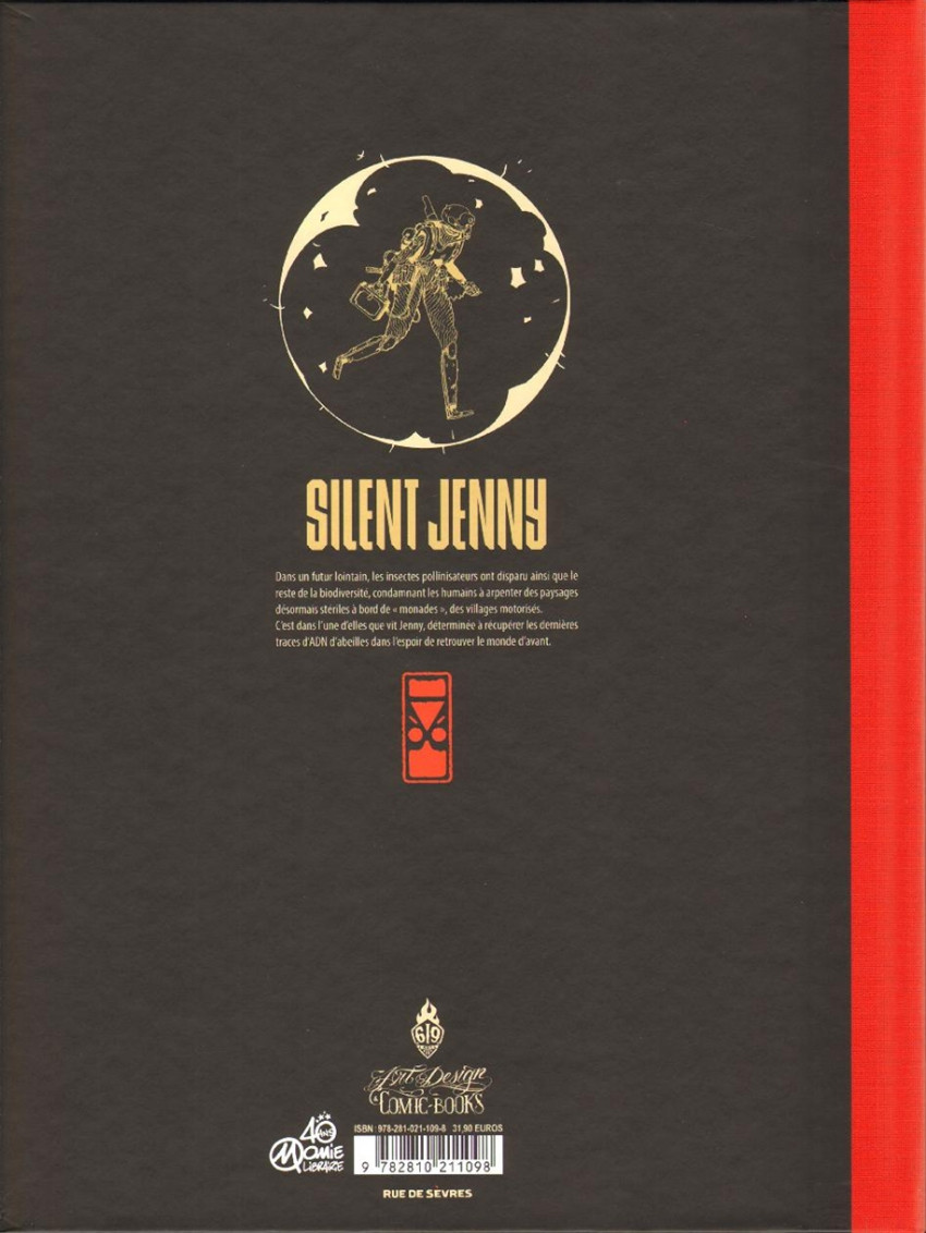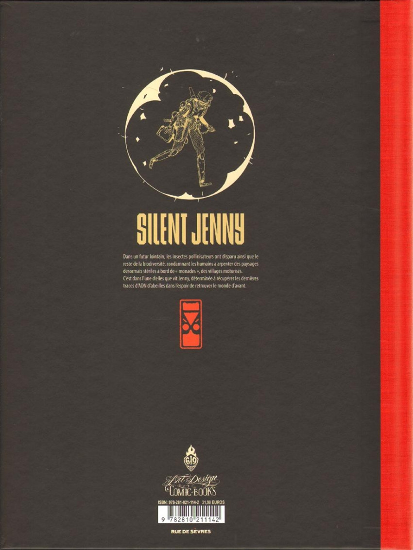 Dans « Silent Jenny », il est question d’explorer un inframonde microscopique à la recherche d’ADN d’abeille, pour tenter de repolliniser une Terre devenue stérile. Ce futur n’est plus qu’étendues désertifiées parcourues par des monades, d’énormes habitats mobiles montés sur chenilles, faits de bric et de broc, dans lesquels vivent des poignées de survivants. De ses immensités désolées émergent quelques cités et des tours Pyrrhocorp, la toute puissante compagnie qui régente la Planète et pourchasse impitoyablement les monades pour leur mode de vie autonome et indépendant. Quelques autres peuplades y survivent également et les liens qui les unissent tous, amis comme ennemis, sont la clé de leur fragile équilibre.