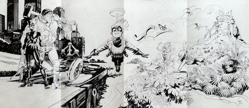 Deux personnages : limité à 20 exemplaires – les visuels étant sensiblement les même il n’y a pas de choix à faire vous aurez automatiquement votre tirage de luxe Supergroom accompagné de la commission avec 2 personnages (Supergroom + Fantastik le Mirifique)