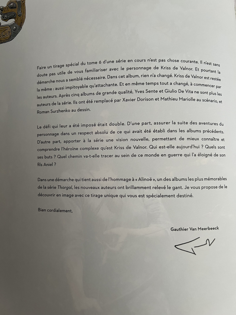 Une bonne aventure de la belle Kriss. Un petit goût d'Alinoë avec ce huis-clos sur une île perdu et son atmosphère oppressante sans tomber dans le piège du copié/collé. Des dessins réussis et une bonne nouvelle : les "petits" nouveaux font honneur à leurs illustres prédécesseurs (et créateurs) pour mettre en scène Thorgal et ses "amis".