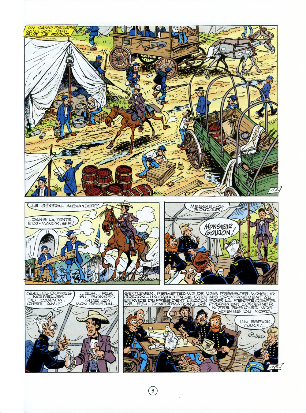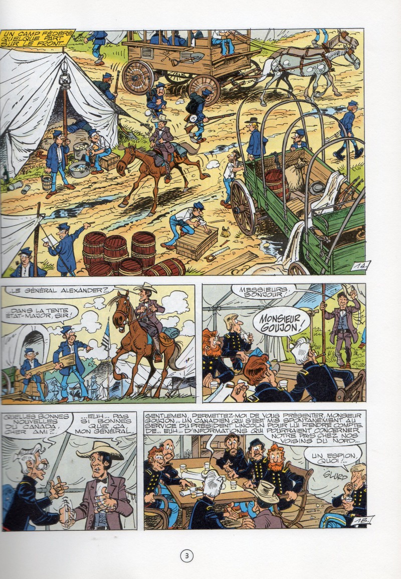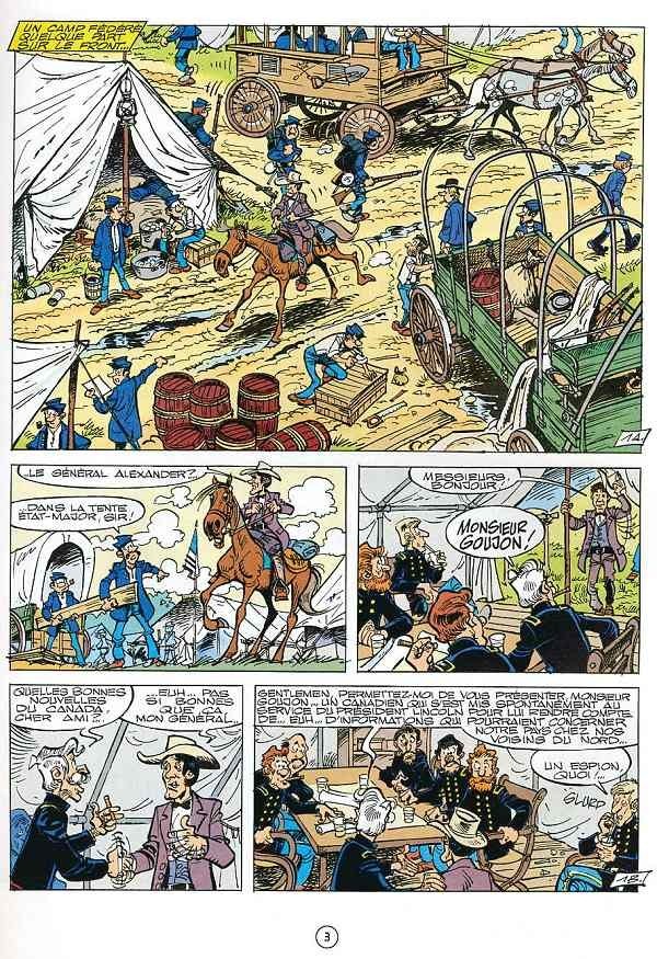 Panique à bord du « navire » nordiste ! Avec cet or, la guerre pourrait bien être prolongée d'une dizaine d'années ! Les Sudistes ne manqueraient pas d'acheter des armes grâce à ce trésor inespéré. le Nord se doit de réagir ! Il faut envoyer un agent en civil au Canada pour mettre la main sur cet or, ou pour le faire disparaître afin qu'il ne puisse tomber entre les mains des Confédérés. le choix se porte sur le sergent Chesterfield ! J'ignore ce que l'état-major nordiste a fumé, mais c'était fort ! Très fort ! Chesterfield demande à être accompagné d'un homme. Permission accordée ! Et voilà le caporal Blutch embarqué avec le sergent le plus à cheval sur le règlement que l'Union puisse compter dans ses rangs, le plus borné, quoi ! A Québec, nos deux héros vont rencontrer Raynald… Un coureur des bois ! Un vrai qui court vraiment ! Une chance inespérée de tomber sur un homme qui connaît la forêt et les techniques de survie…