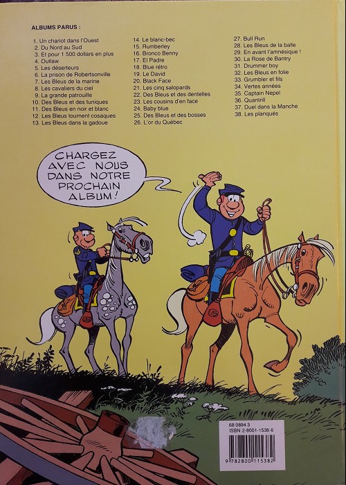 Un excellent tome des Tuniques Bleues qui en comptent beaucoup. Un moment de détente apprécié car, malgré la gravité de la situation (on parle tout de même d'une bataille qui fit près de 5OOO pertes dont un millier de morts) nous pouvons compter sur le caporal Blutch (antimilitariste convaincu) et l'héroïque sergent Chesterfield pour détendre l'atmosphère par leurs facéties.