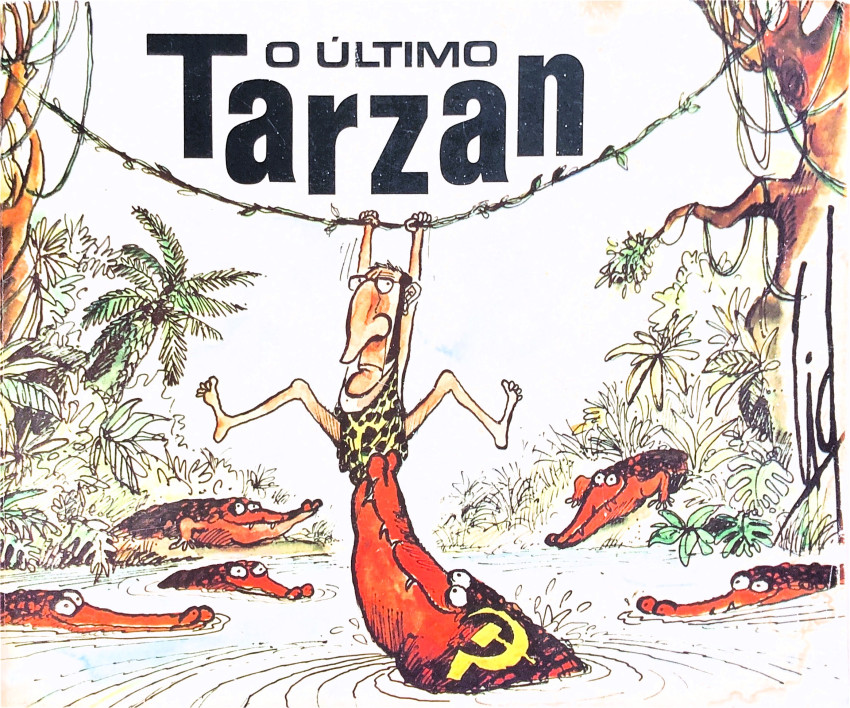 Cartoon político dedicado aos principais políticos do Portugal pós 25 de Abril: Ramalho Eanes, Mário Soares, Sá Carneiro, Maria de Lurdes Pintassilgo, Álvaro Cunhal e outros.
