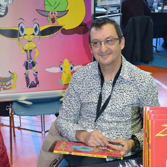 Ma vocation est précoce. L'humour est mon école, mon université, la BD mes diplômes. J'ai suivi de très, très longues études, Raymond Devos, Jean Yanne, Maurice Biraud, Pierre Doris, Alphonse Allais, Pierre Dac, Francis Blanche, Marcel "Gotlib", Claude Serre; et un certain Michel Drucker qu'ils en soient ici remerciés ! Les passions ? Il y a l'humour, le dessin, la course automobile, la musique. 1988 et 89 j'ai eu le privilège d'aider Mme Renée Rondeau à la réalisation du livre biographique de son fils Jean. Sans oublier la photo où j'ai pu toucher le sport automobile. Fixer sur la péllicule mes idoles, les belles voitures en attendant de les piloter... et je gribouille toujours et encore au désarroi de mes parents. Dans les années 80 je suis enfin pilote automobile. 1984, 85, 86, Championnat de France des circuits Cat Groupe 6. 1988 Championnat du Monde des voitures Groupe C (24 heures du Mans). 1989 Championnat d'Allemagne et de Suisse des circuits Pilote d'usine pour le constructeur Argo. Mais jamais je ne pourrais piloter les voitures mythiques de mon enfance. Alors je les dessine. Plus de 100 pilotes automobiles ont dédicacé mes dessins. Dont J Stewart, N Lauda, A Prost, H Pescarolo, K Tyrrell... Dans les années 80, j'ai participé également à des projets de conception de voitures de compétition sur les dessins techniques et design. La course c'est fini, mais il me reste l'humour, le dessin qui me colle à la peau. Et un jour... Une mascotte, l'humour, un voyage en Inde, mélangez le tout et vous trouvez la BD Zoreye et ses amis. Et comme Zoreye est mon kit de survie, depuis je vis en T-ORY !