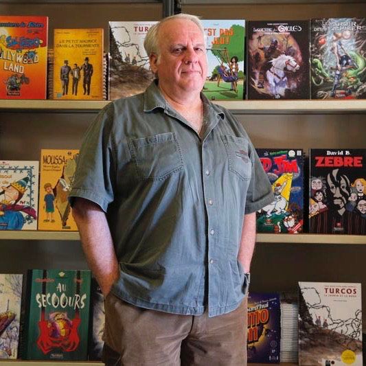 José Jover est entré sur concours à l’École Nationale Supérieure des Beaux-Arts en 1975. En1981, dès la fin de ses études, il devient professionnel dans la BD publiant pour la presse Jeunesse et adulte (Phosphore, Pif Gadget, Virgule, Charlie Mensuel, Zoulou, Circus, Actuel,Viper…). Il intervient depuis 23 ans avec des ateliers d’initiation à la narration par la BD, pour différents organismes tels que des Comité d’Entreprise (CCAS EDF GDF, SNCF, Renault, CCE BNP-Paribas, RATP…) et de grandes associations telles que la Croix Rouge Française dans les prisons, les hôpitaux, et aussi des villes, des Médiathèques… Au fil des années, il va toucher professionnellement à tous les domaines graphiques où il peut exercer sa passion tout en construisant progressivement les bases solides qui lui permettront de créer les Éditions Tartamudo. José Jover a publié des Albums BD (Glénat, Futuropolis…), des livres Jeunesse (Hachette, Syros…), réalisé de nombreuses affiches, il a aussi été exposé en 1985 au Centre d’Art Moderne Georges Pompidou avec des tableaux dans la ligne dite de la « Figuration Libre ». Auteur-illustrateur, il met son talent au service de la tolérance sociale et culturelle. Parallèlement à ses activités de dessinateur de BD, de dessinateur de presse, d’illustrateur dans l’édition jeunesse et adulte, de peintre, de réalisateur de dessins animés, José Jover a créé cette maison d’édition BD indépendante en 1999 avec pour vocation de publier des albums jeunesse et de la bande dessinée, mais aussi des récits citoyens et des histoires qui nous questionnent ! Il accorde à son catalogue une grande place à la découverte de nouveaux talents ainsi que des auteurs confirmés comme David B, Baudouin, Farid Boudjellal, Vincent Pompetti et Tarek.