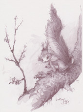 Commentaire : Fait partie des 15 illustrations composant le portfolio Ecureuils édité, en participation avec la Caisse d'Epargne du Pas-de-Calais, à l'occasion du 8ème festival BD de Boulogne-sur-Mer, en 1998.