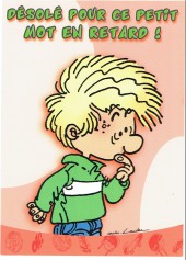 Commentaire : Fait partie d'un ensemble de 10 cartes postales issues des Spirou n°3108 du 5 novembre 1997 et n°3113 du 10 décembre 1997 comprenant une carte pour les séries : Agent 212, Le Boss, Cédric, Cupidon, Les Crannibales, Garage Isidore, Kid Paddle, Mélusine, Passe-moi l’ciel, Toupet. Carte n° 6 de la Cartothèque de l'abonné.