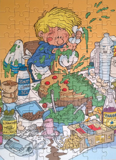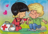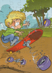 Commentaire : Carte puzzle d'anniversaire de 48 pièces. Format livret cartonné avec une enveloppe bleue, le tout sous blister transparent scellé. Il existe 4 versions en 4 couleurs : vert, orange, rose, bleu. Format livret : 310 x 200 mm. Format puzzle : 150 x 200 mm