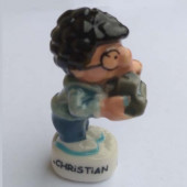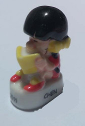 Commentaire : Figurine flexible offerte aux membres du Club Spirou dans des colis malins envoyés à raison de six par an aux enfants adhérents. Au dos du blouson : © DUPUIS 1997 CAUVIN LAUDEC. À l'arrière de la jambe droite : CE.