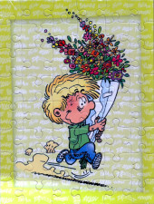 Commentaire : Fait partie d'un ensemble de 4 cartes postales issues du Spirou n°3018 du 14 février 1996, pour la Saint Valentin, comprenant une carte pour les séries : Le Petit Spirou, Cédric, Cupidon et Mélusine.