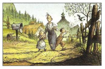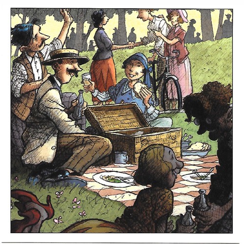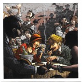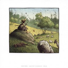 Commentaire : Fait partie d'un ensemble de 18 cartes postales contenues dans le portfolio. Illustrations réalisées par Loisel et Tripp, mises en couleur par Lapierre et réunies dans une pochette limitée à 500 exemplaires.