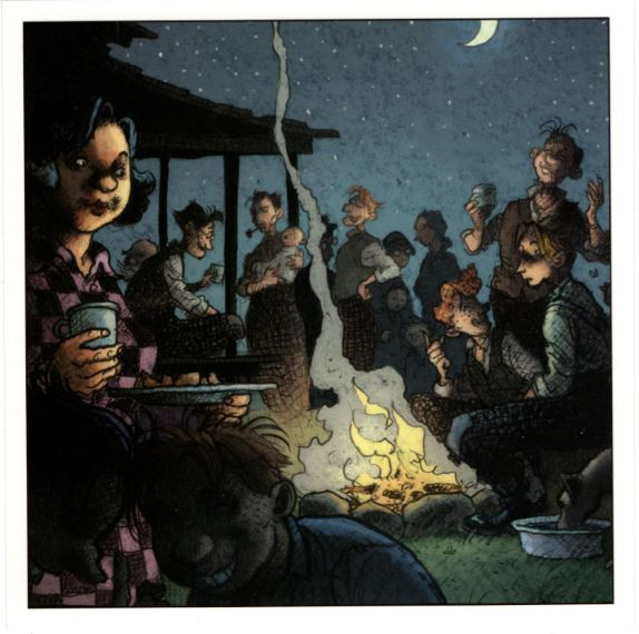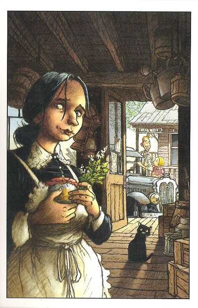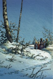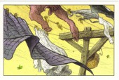 Commentaire : Fait partie des 18 cartes postales contenues dans le portfolio, numérotées de 19 à 36, extraites du troisième album. Illustrations réalisées par Loisel et Tripp, mises en couleur par Lapierre et réunies dans une pochette limitée à 500ex. Imprimé sur papier Trucard 350g avec vernis de protection.