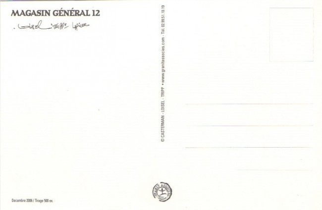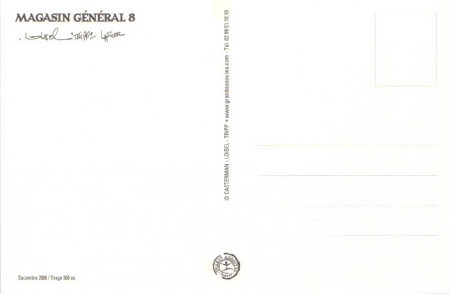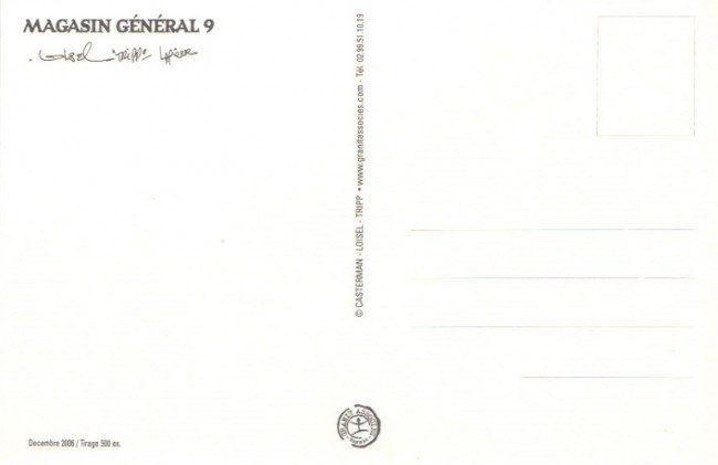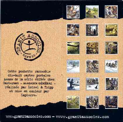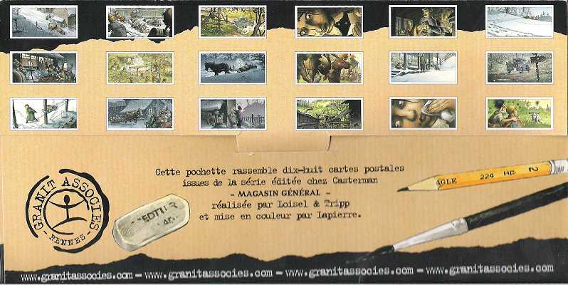 Commentaire : Pochette de 18 marque-pages (plus un certificat) issus du tome 7 de la série "Magasin Général" de Loisel et Tripp.