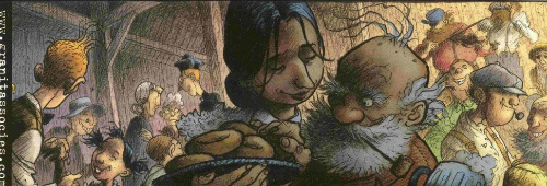 Commentaire : Fait partie d'un ensemble de 18 marque-pages. Issu de la planche 33 du tome 7 de la série.