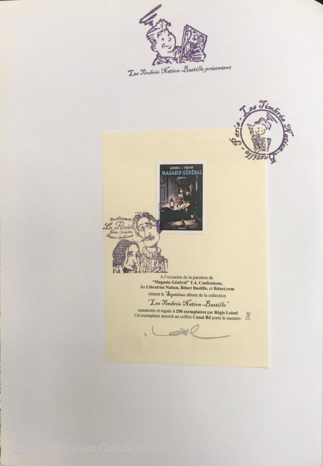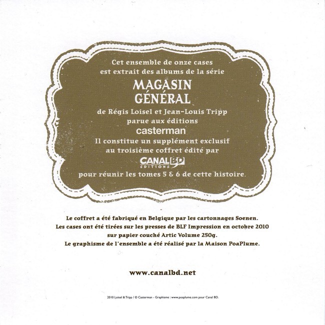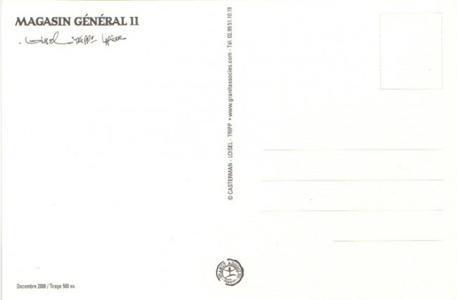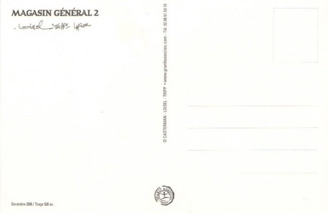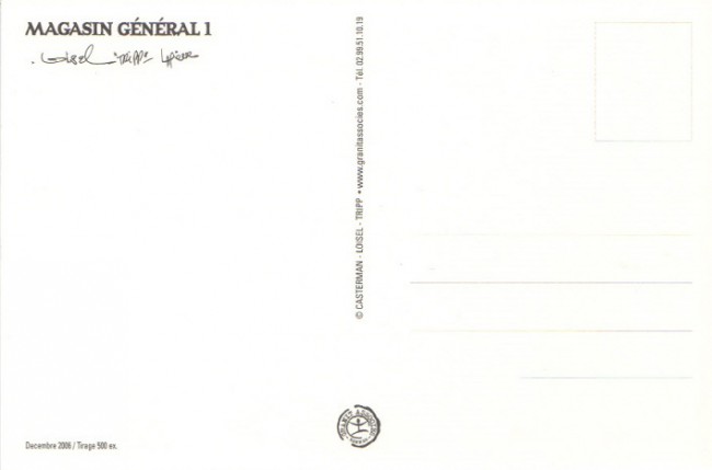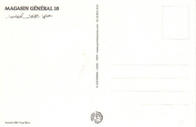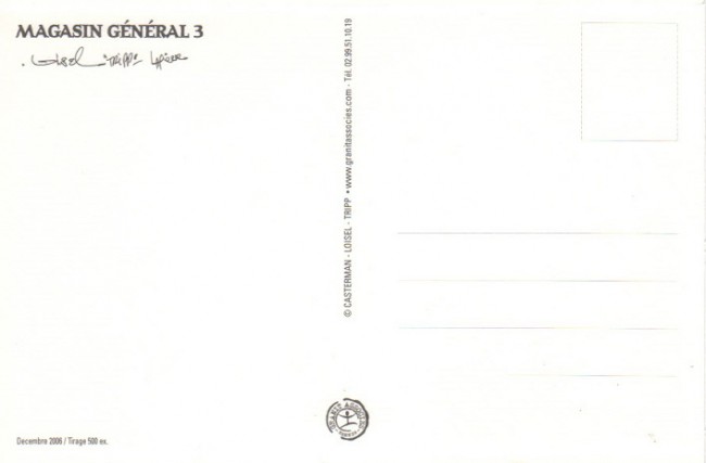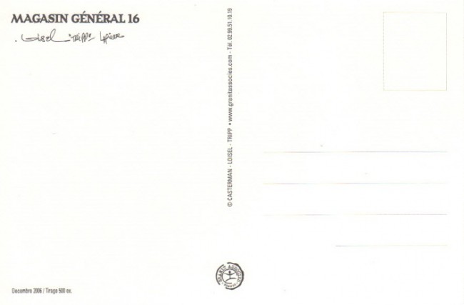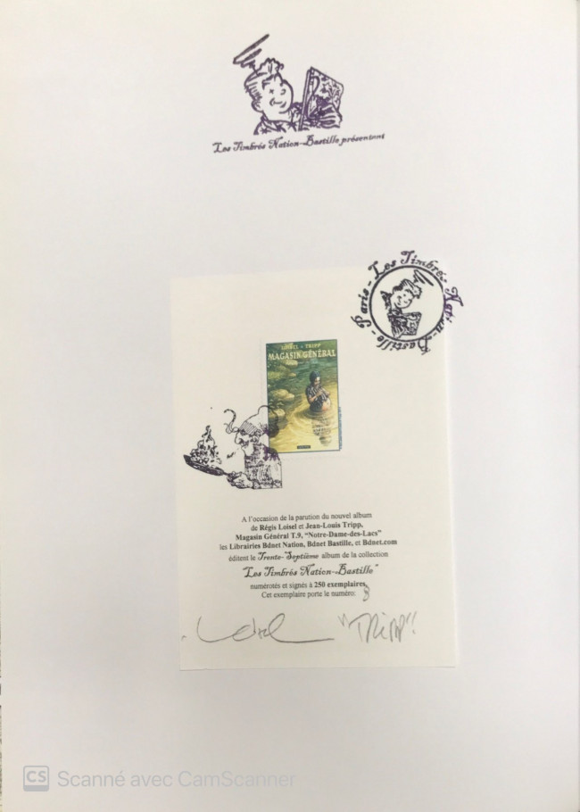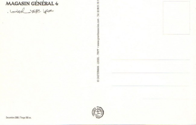 Commentaire : Contient un "Album portraits souvenir du Magasin Général" et un certificat signé par Tripp et Loisel.