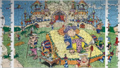 Commentaire : 812 pièces. Fresque réalisée à partir de 03 Puzzlerama de 280 pièces chacun, tous parus en 1977. L'association des 3 puzzles se fait grâce à 28 pièces spéciales, fournies avec le Puzzlerama 02. 3 puzzlerama Astérix et Iznogoud existent également sur le même principe. Ces deux derniers sont parus en 1978.
