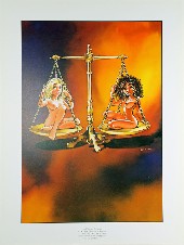 Commentaire : Statuette éditée à l'occasion du 2è festival BD Côte d'Azur de juin 1999. Les 100 premiers exemplaires recevaient un ex-libris sérigraphié couleur. Les abonnés LDC/Bédégramme recevaient une version noir et blanc de cet ex-libris. Livré en boite avec protection sur mesure.