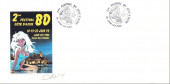 Commentaire : timbre édité& pour les 10 ans de LDC - Bédégrammes. En visuel 1, l'intérieur de la pochette où figure le timbre. En visuel 2, l'extérieur donc,avec un dessin d'André Juillard au recto et la numérotation au verso.