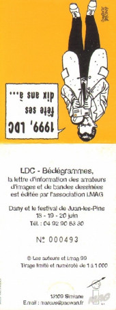 Commentaire : Ex-libris remis aux abonnées LDC/Bédégramme pour l'achat de la statuette de Dany éditée à l'occasion du 2è festival BD Côte d'Azur de juin 1999.