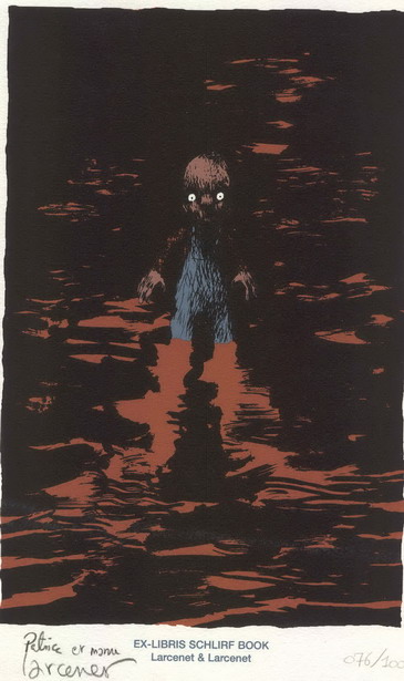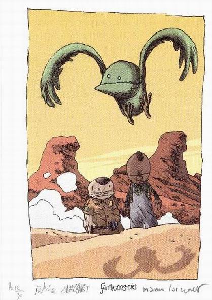 Commentaire : Fait partie des 19 illustrations du portfolio. Les autres illustrations sont tirées des séries suivantes : Venezia, La Nuit de l'Inca, Les véritables aventures d'Aleksis Strogonov, Tout va bien, Le chat du rabbin, La voleuse du Père-Fauteuil, Les pauvres aventures de Jérémie, Les formidables aventures de Lapinot, Samedi et Dimanche, Les Chercheurs de trésor, Les Couleurs de l'infamie, Le Trésor d'Alazar, Petits Contes Noirs, Isaac le pirate, Le retour à la terre, Inspecteur Moroni, Supermurgeman, Le Stéréo Club.