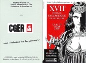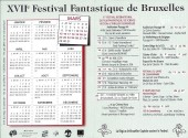 Commentaire : Calendrier de poche présentant le programme du Festival du Film Fantastique de Bruxelles - le Brussels International Fantastic Film Festival (BIFFF) - du 12 au 27 mars 1999 et illustré par l'affiche du festival avec un dessin inédit d'Yves Swolfs.