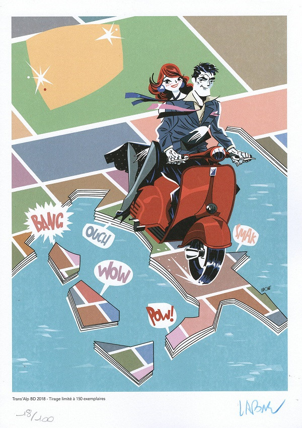 Commentaire : Contient 12 cartes couleur. Chemise en couleurs avec pelliculage mat + ruban. 26 exemplaires EA numérotés de A à Z réservés à l'auteur et à l'éditeur.