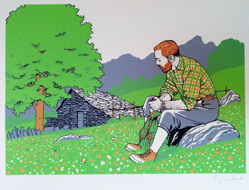 Commentaire : Fait partie des 13 illustrations contenues dans le portfolio édité pour les 10 ans de la librairie Raspoutine intitulé "Cuzzego mon village d'enfance".