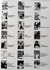 Commentaire : Version néerlandaise du portfolio. Portfolio contenant 1 planche titre, 21 posters détachables et 1 planche de vignettes avec les légendes des illustrations. Ni numéroté, ni signé.