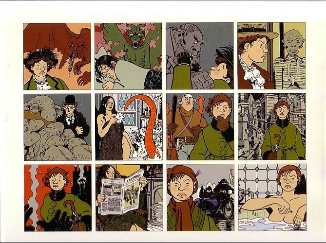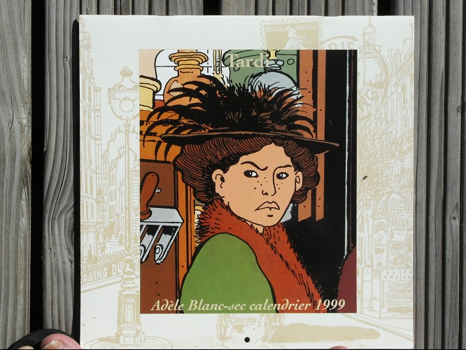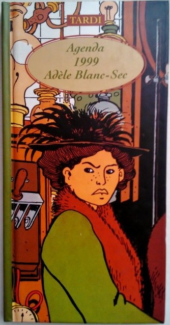 Commentaire : Titré "Les Couvertures d'Adèle", et réalisé en octobre 1998 à l'occasion de la parution de la quatrième sérigraphie, "Le Mystère des profondeurs", de la collection consacrée aux couvertures d'Adèle Blanc-Sec. Un exemplaire était remis à chaque acheteur d'une sérigraphie "Adèle Blanc-Sec".