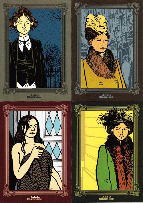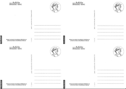 Commentaire : Planche prédécoupée de 4 cartes postales exclusives, offertes dans le fourreau pour les tomes 7 et 8 créé pour la sortie du film Adèle Blanc-Sec.