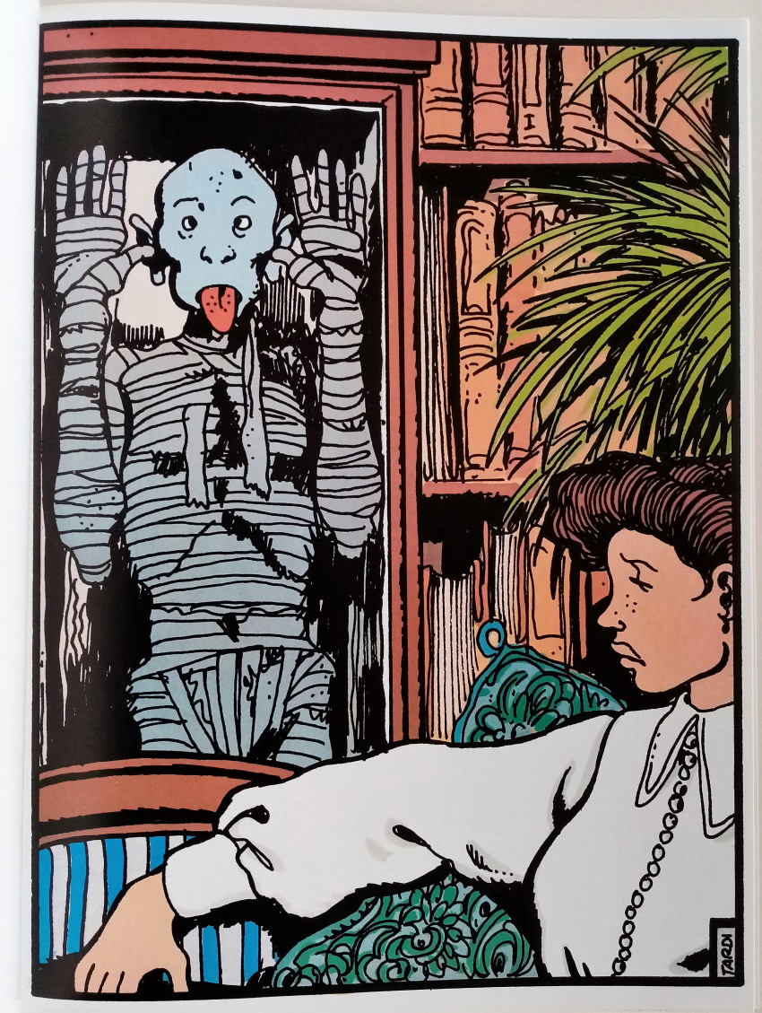 Commentaire : Carte probablement pirate. Correspond approximativement à la case 5, page 5 de l'album "Momies en folie".