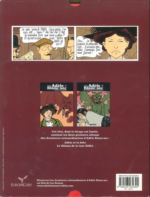 Commentaire : Fourreau crée pour la sortie du film Adèle Blanc-Sec. Chaque coffret contient 2 albums + un poster.